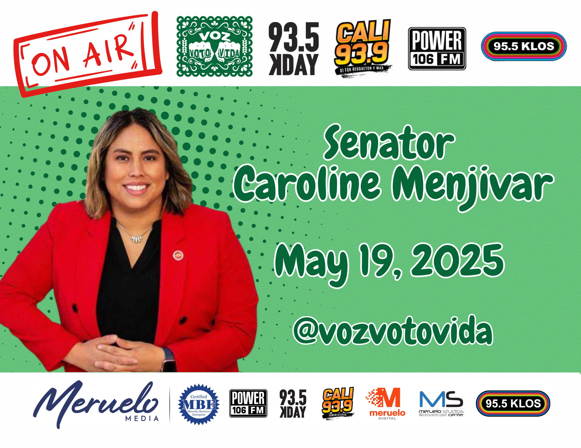 Tu Voz, Tu Voto, Tu Vida is an initiative dedicated to energizing and mobilizing communities to participate in the electoral process. Our mission is to increase voter turnout by providing essential resources, information, and support to ensure that every eligible voter has the tools the need to make their voice heard. Though Meruelo’s targeted outreach on 93.5KDAY, CALI93.9, 95.5KLOS , POWER106 and educational campaigns and community events, we strive to bridge the gap between citizens and the democratic process.